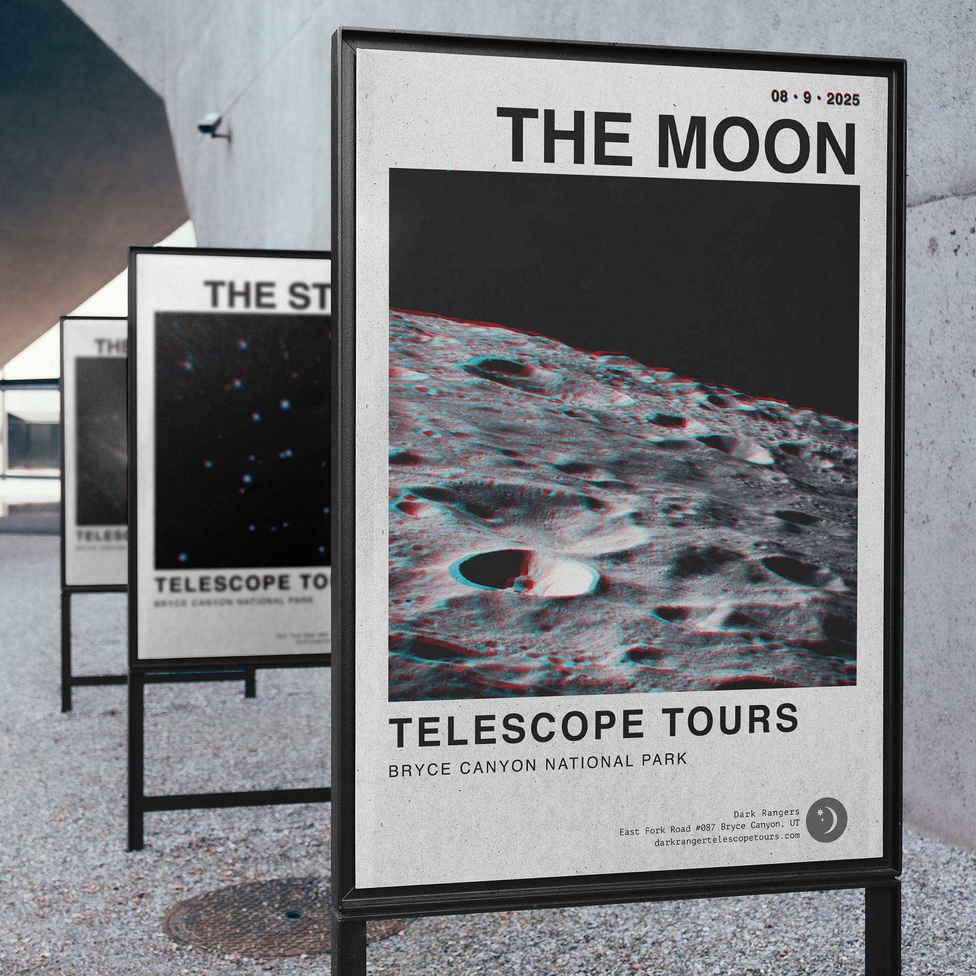 This poster series promotes a hypothetical three-day astronomy event hosted by The Dark Rangers, an organization that leads educational telescope tours in Bryce Canyon National Park. I aligned the event with a full moon and the annual Perseids meteor shower, structuring each night around a distinct celestial focus to create a cohesive yet varied visual system across the series.