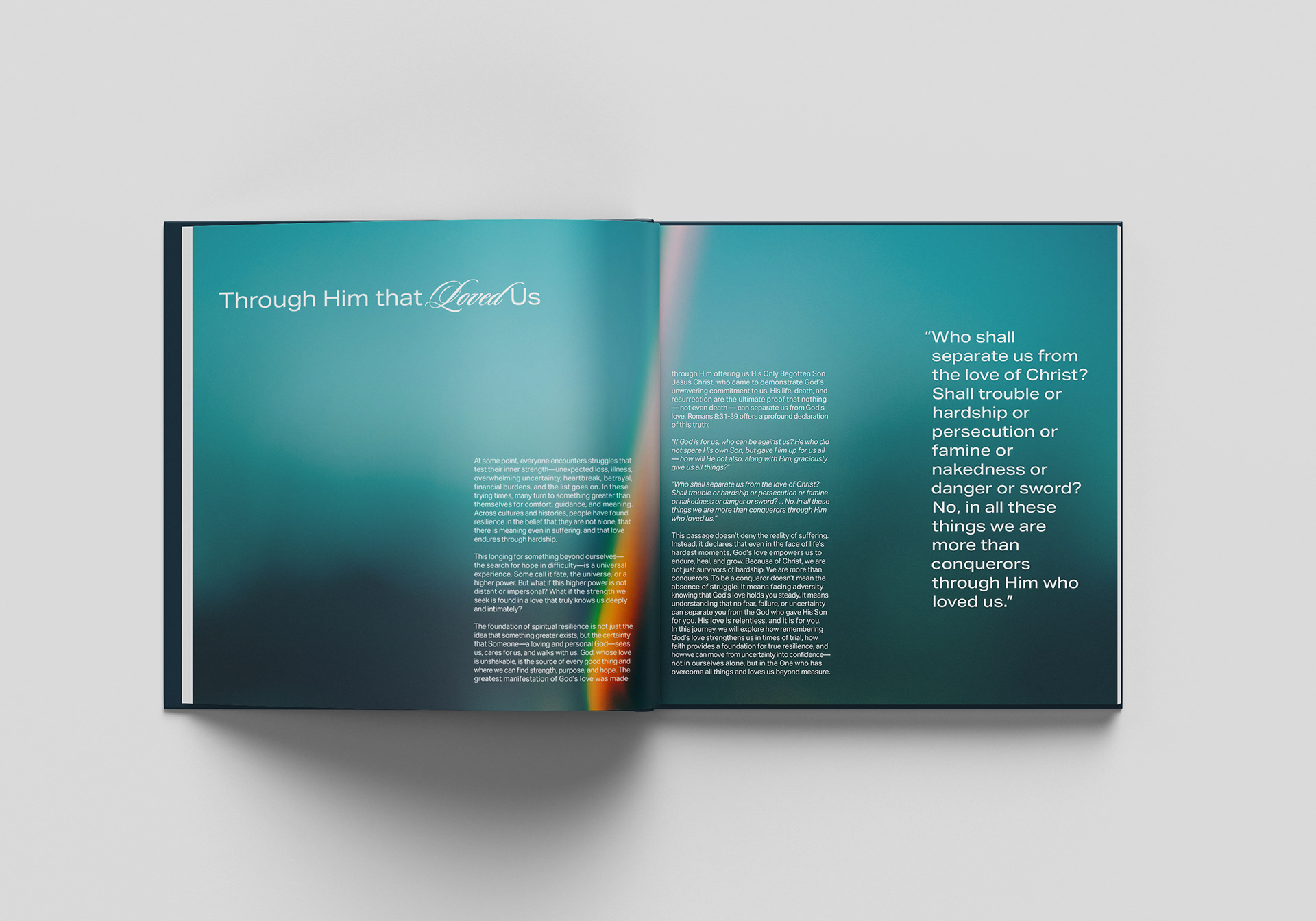 More Than Conquerors is a publication centered on how to build resilience through relying on God. It goes through the practices that build faith, including prayer and expressing gratitude.
